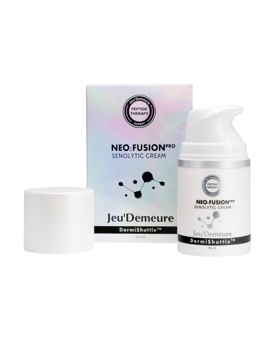Neo:Fusion Senolytic Cream - уникальная формула с сенолитиками и инновационной системой доставки DermiShuttle™ работает на клеточном уровне, чтобы не просто ухаживать за кожей, а запускать процессы её омоложения изнутри.