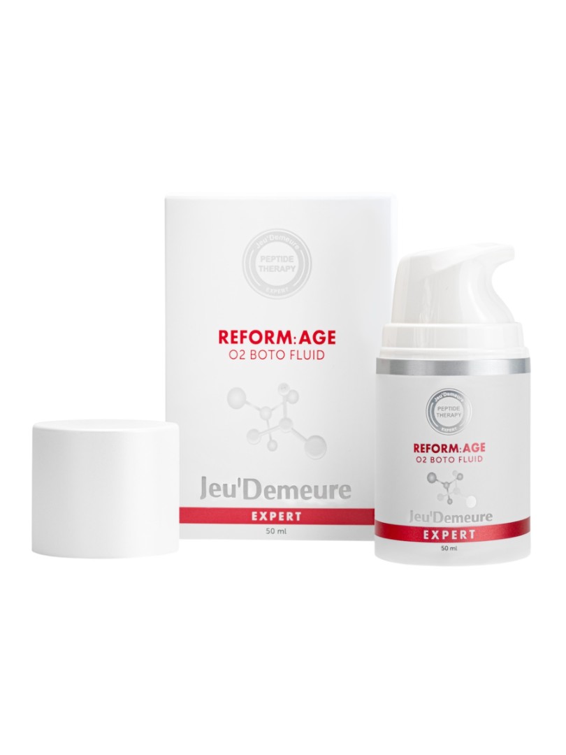 Уникальный кислородный флюид с инновационной текстурой обладает омолаживающим и бото-подобным эффектом. Рекомендуется для уменьшения мимических и возрастных морщин, для ревитализации уставшей стрессорной кожи. Флюид является радикальным омолаживающим средством тройного действия: