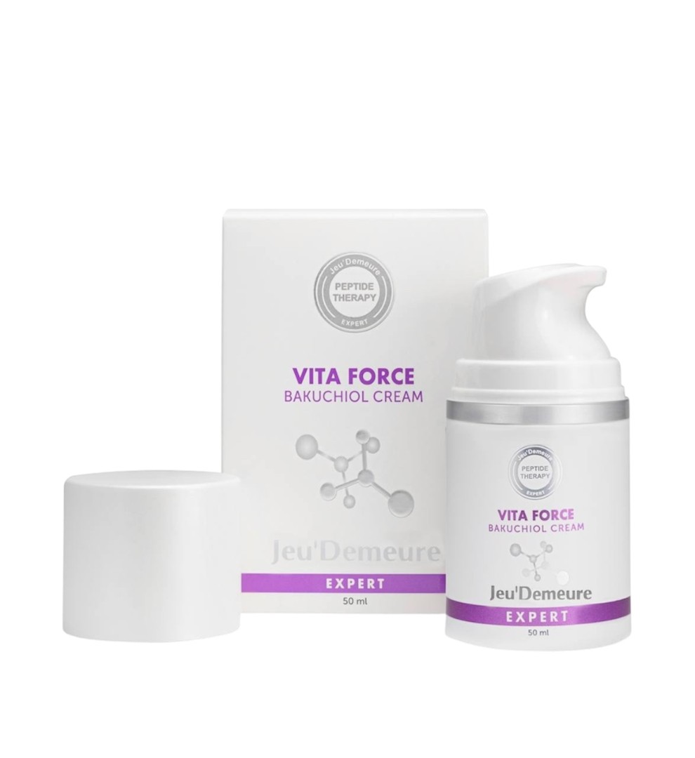 Формула крема Vita Force Bakuchiol Cream объединяет бакучиол - растительную альтернативу ретинолу, пептиды нового поколения и витаминный комплекс, создавая мощный коктейль для омоложения и сияния кожи. Концентрация пептидов: 400 ppm.