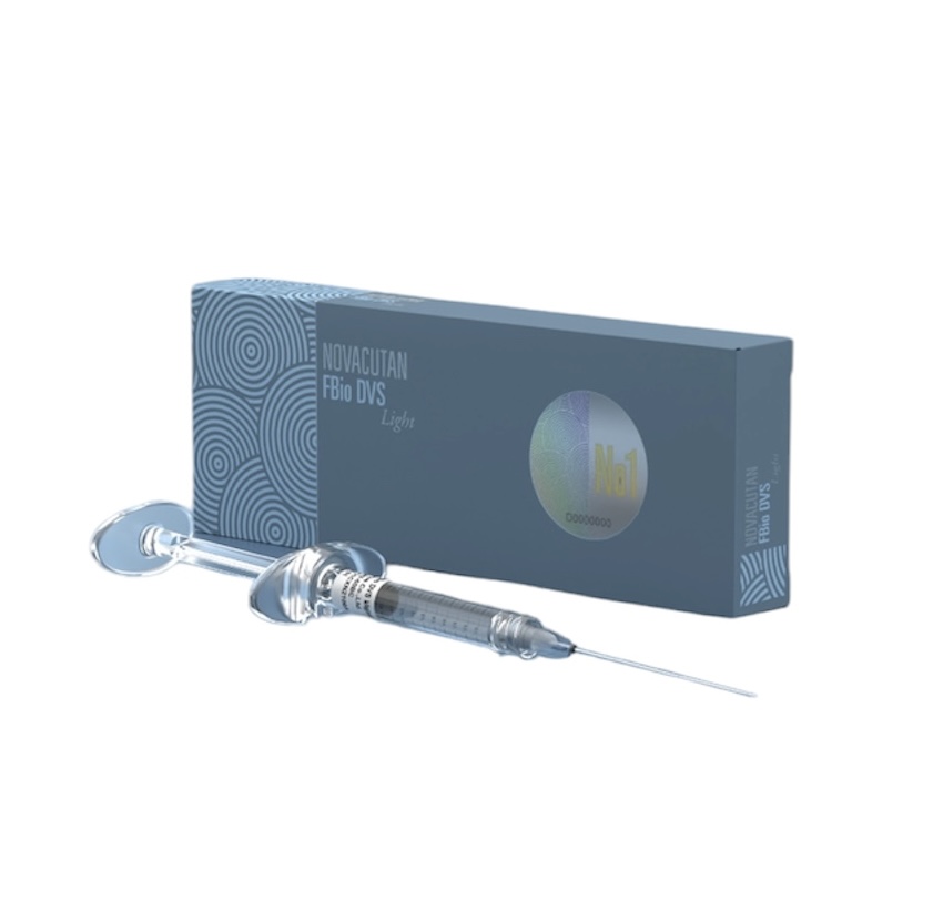 NOVACUTAN FBio DVS Light - препарат представляет собой трехмерный структурированный гель (3DVS), обеспечивающий естественную, мягкую коррекцию тонких и средних морщин — «гусиные лапки», лобные морщины, носослезная и кисетная зона, а также носогубные складки, губы, шею и кисти рук. Благодаря высокой пластичности и когезивности геля препарат обеспечивает естественное и мягкое моделирование контуров лица, возвращая коже упругость и свежесть без эффекта перегрузки. Препарат применяют для устранения мелких и средних морщин, включая «гусиные лапки», кисетные морщины и тонкие складки вокруг глаз и губ, коррекции носогубных складок и других зон с потерей объёма, улучшения текстуры кожи, повышения её упругости и эластичности, восстановления гидратации и улучшения тонуса кожи лица, шеи и кистей рук, проведения профилактических процедур для поддержания молодости и свежести кожи, подготовки кожи к более глубоким эстетическим процедурам в рамках комплексного ухода.